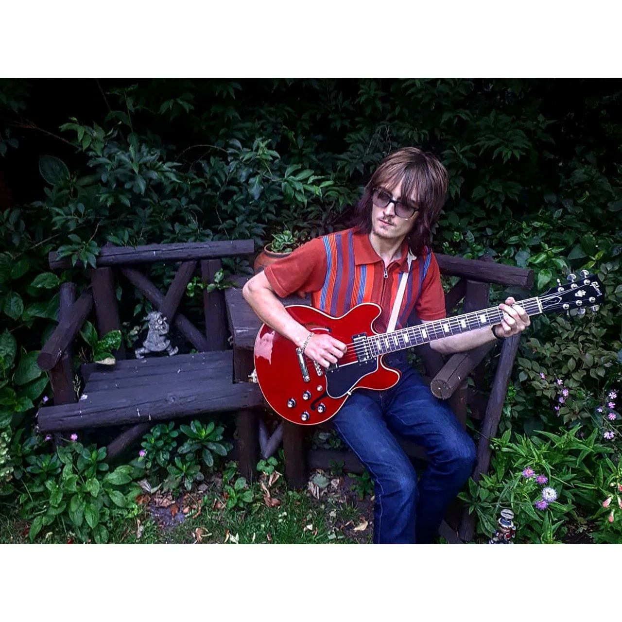 – Retro fine stripe details in white, lemon and burgundy.
