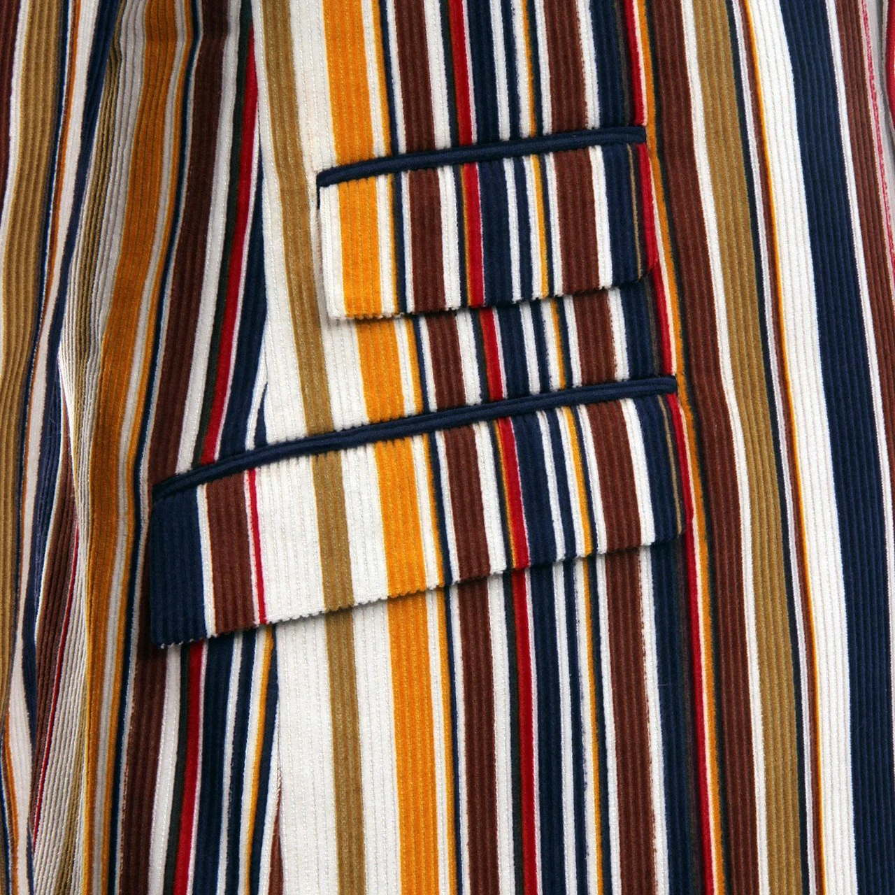 - Madcap England ‘Offbeat Cord’ men’s mod stripe boating blazer.